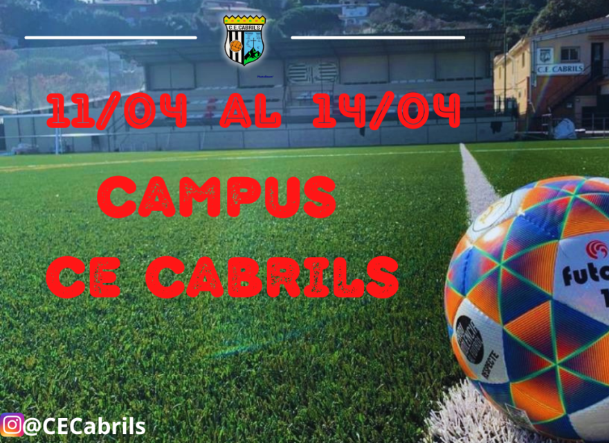 El Campus tindrà lloc de dilluns 11 d’Abril al dijous 14 d’Abril, entre les 9.00 i les 13:30h, al Camp Municipal de Futbol de Cabrils.